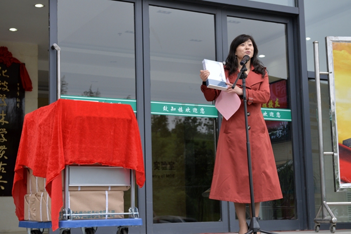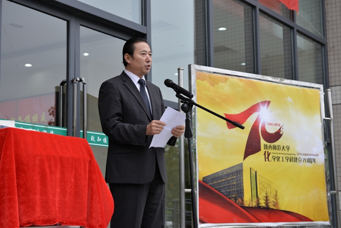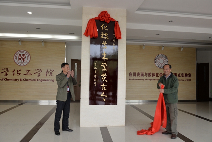 随后,英国365集团公司77级校友、原化学系80级学生辅导员、原化学与材料科学学院党总支书记白剑利代表80级校友向学院敬献了题写“化被草木,学贯古今”的牌匾,表达了校友们对母院的感恩之情与美好祝愿。80级校友符同权、贾天牛共同为牌匾揭幕。