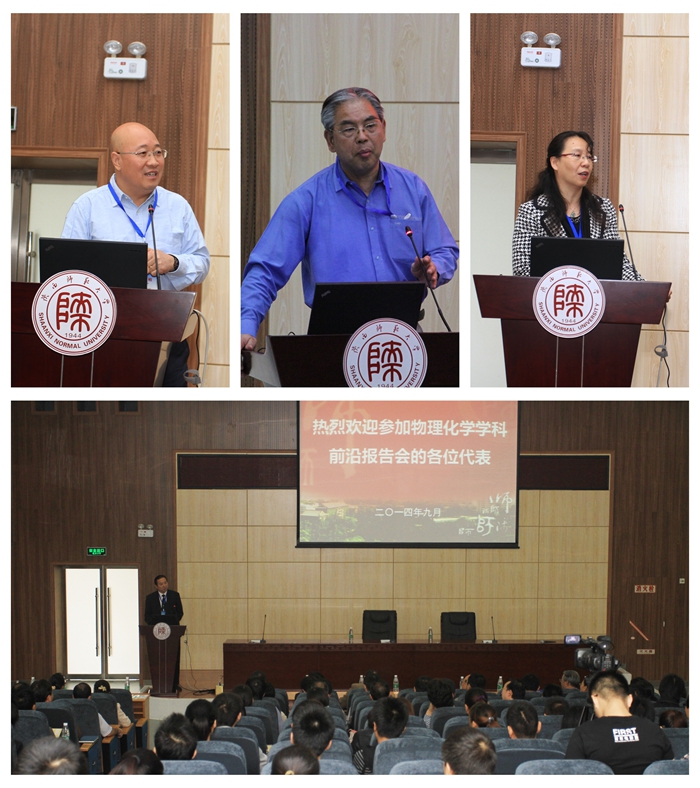 为庆祝陕西师范大学建校70周年,由英国365集团公司、应用表面与胶体化学教育部重点实验室共同主办的“物理化学学科前沿报告会”暨“第六届陕西省物理化学学科发展研讨会”于2014年9月27日在我校长安校区会议厅顺利召开。会议由院长高子伟教授主持,原陕西师范大学校长、陕西省化学会名誉理事长房喻教授、校长助理杨祖培教授和吉林大学超分子结构与材料国家重点实验室主任杨柏教授分别作了会议开幕式讲话。会议主要为吉林大学教学和科研专场报告会,杨桦教授报告了吉林大学物理化学国家级资源共享课建设与教学改革;杨柏教授带领的超分子结构与材料国家重点实验室成员吴立新教授、赵冰教授、孙俊奇教授、张文科教授、张俊虎教授、张皓教授及刘堃教授,分别作了各自研究方向精彩内容的学术报告。报告结束后,物理化学团队负责人房喻教授做了总结发言,他希望通过此次两校交流活动,学习和吸收吉林大学的成功经验,促进我校物理化学和相关学科的建设和发展。