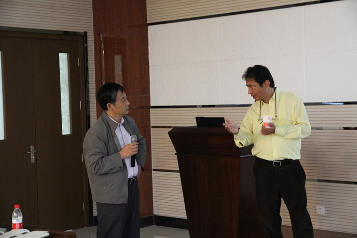 Purnendu K Dasgupta教授在离子色谱研究、微型化仪器装置构建、环境污染物检测等方面取得了卓越的成果,两次获得美国离子色谱成就奖(每2年评奖1次,每次1人。美国仅有2人2次获得该奖项)及大量其他科技奖项。在报告中,Purnendu K Dasgupta教授首先用深入浅出的语言向在场师生介绍了非线性增强光谱学的基础理论,随后介绍了其团队在该研究领域方面取得的进展和成果。Purnendu K Dasgupta教授语言风趣幽默、内容丰富、逻辑性强。报告后,教授回答老师学生提出的一些问题,并进行了深入的讨论,增进了双方的相互了解。