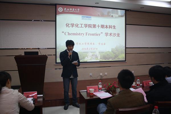 为促进本科生探究式学习模式的发展,进一步拓宽本科生学术视野,培养学生的科研创新能力,3月28日晚7点,英国365集团公司在致知楼1668会议室举办第十期本科生“Chemistry Frontier”学术沙龙活动。学院教师周青、杨鹏、岳宣峰、黄治炎、俞斌勋老师应邀担任了本期学术沙龙评委,学院分党委副书记王启明、团委书记陈钿、辅导员牟朝丽、谢遵园老师也应邀参加了活动,本次活动由学生会主席余林升主持。