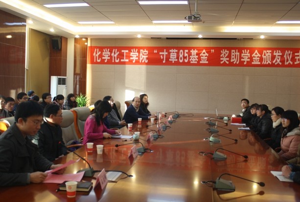 颁奖结束后,2010级应用化学班王骄阳同学代表受资助学生发言,表达了要努力学习,奋发进取,以优异的成绩来回报85级的师兄师姐们的信心和决心。随后“寸草85基金”的四位负责人纷纷发言:李涛老师结合自身的人生经历勉励同学们要在社会生活中努力做到“三心”(即平常心、恒心、耐心)和“三吃”(即吃苦、吃亏、吃气);辛文利老师用身边优秀校友的成长故事激励同学们要学会与人沟通,积极进取,追求卓越;吴利平老师强调了平和的心态对于事业成功的重要性,希望同学们打好事业的根基,全面发展;张国防老师鼓励同学们培养爱心和同情心,发扬学院的优良传统,胸怀祖国,志存高远。