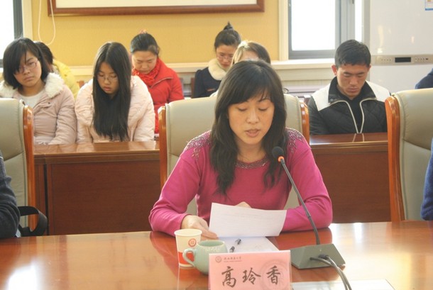 最后,高玲香书记对设立基金的85级校友表示了诚挚的感谢,并对校友们扶危济困的仁者情怀给予高度赞扬。高老师指出,“寸草85基金”奖助学金与其他捐赠的不同之处在于,它是由许许多多的校友共同捐赠的,校友们曾经在学院学习过,走向社会工作后,用自己的劳动所得来支持师弟师妹们,这份情意更显深厚。高老师希望每一位获助的同学心怀感恩,树立止于至善的奋斗精神和生活目标,不断努力,积极进取,提高自身的内在美和外在美,争取成为一个有益于国家、有益于社会、有益于民族,乃至有益于世界文明进步的有作为的人,不辱历史赋予的使命,不负校友们的期望!高老师号召学院所有的同学追随85级校友的足迹,将爱蔓延,让爱心传递,将来为师大、为家乡、为祖国的建设贡献自己的力量!