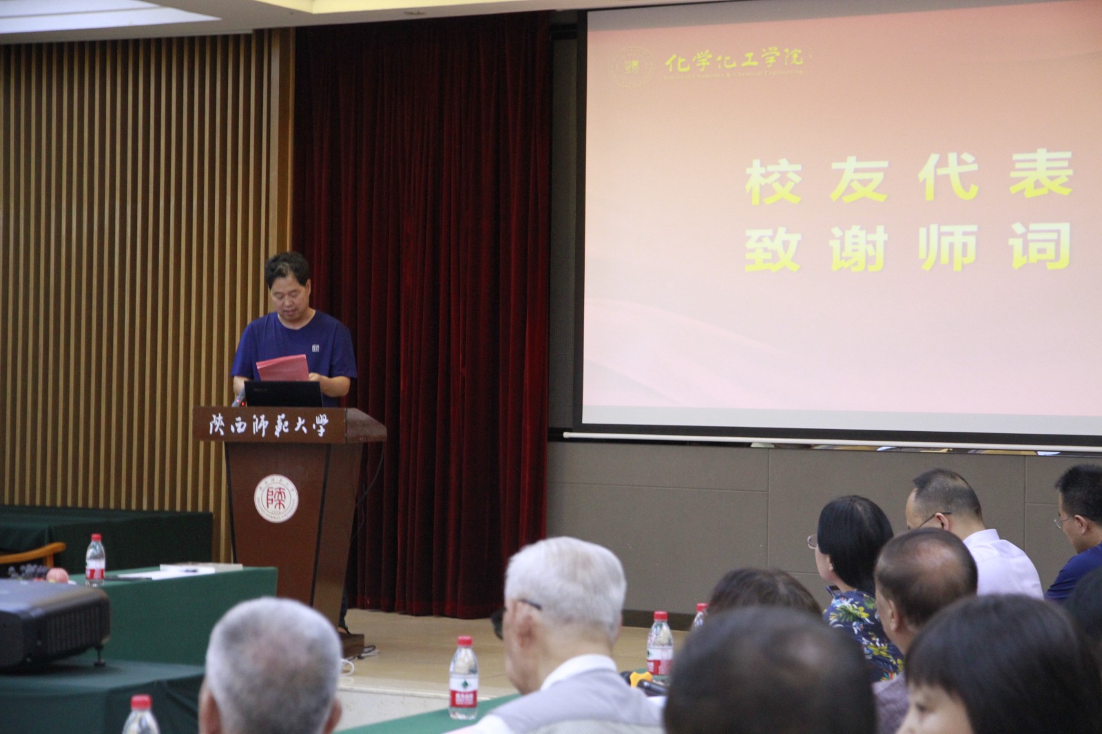 89级校友代表商洛学院图书馆馆长张国春教授、江苏省特级教师、泗阳双语实验学校支部书记张曼丽致谢师辞。张国春带大家共同回忆了在陕西师范大学度过的难忘时光。他表示,“厚德、积学、励志、敦行”的校训铭刻在每一位学子的心中,这激励着大家扎根基层,踏实工作,用实际行动诠释校训的真正含义。张曼丽动情地说到,时间的匆匆流逝,无法磨灭对母校的拳拳之情;奋斗的艰辛路上,心中永远铭记的是母校老师的淳淳教导。