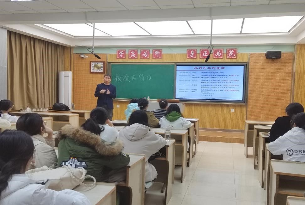 11月26日,化笃2301班在雁塔校区教学五楼5205举办“教授接待日”活动,马佳妮教授和薄鑫副教授应邀参加。他从“身心 学习 生活”三点着眼,向同学们讲述了如何过好大学生活,提出了“为人师表、成人之美、身心健康、端正品行”的十六字要求。