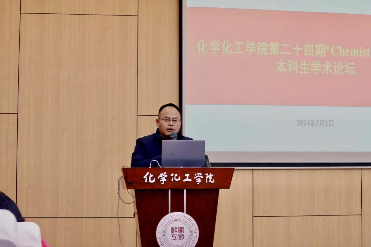 开幕式上,学院党委副书记贾颍辉致辞。他指出“Chemistry Frontier”本科生学术论坛是英国365集团公司的品牌特色,希望同学们能积极展示科研成果,虚心听取评委老师提出的意见建议,以此次论坛为契机,鼓励大家积极参与科研项目,提升自身科研水平,争取在各类科研竞赛中获得优秀的成绩。