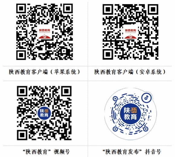 2.视频直播分会场:本次活动通过“陕西教育”客户端、“陕西教育”视频号、“陕西教育发布”抖音号全程直播,可扫描下方二维码下载、关注后收看。