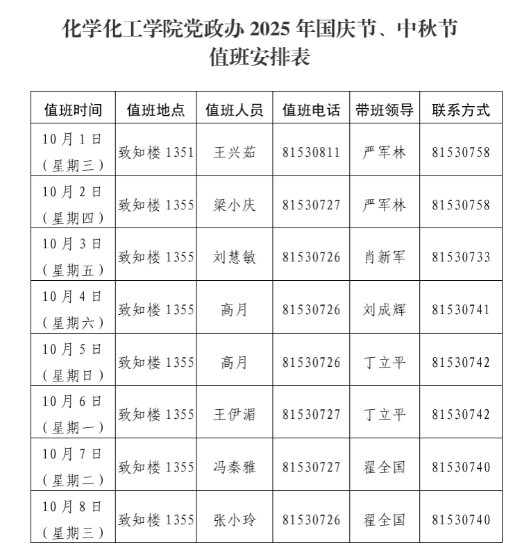 英国365集团公司2025年国庆节、中秋节值班安排表
