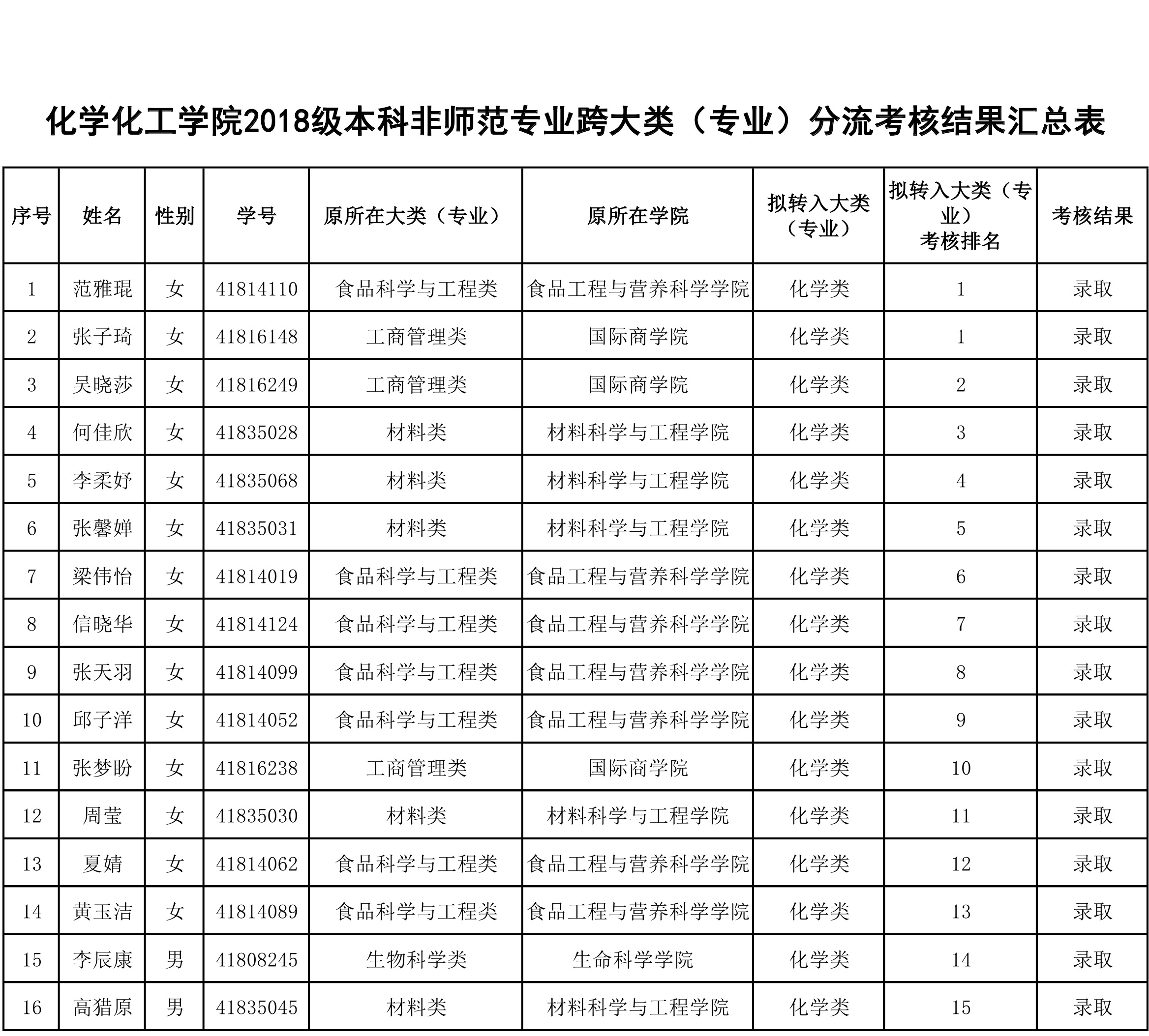 根据《陕西师范大学本科非师范专业大类招生培养改革方案(试行)》办法,英国365集团公司对2018级申请转入化学类的非师范专业学生进行笔试和面试综合考核。现有27名学生通过考核,现将学生名单公示如下: