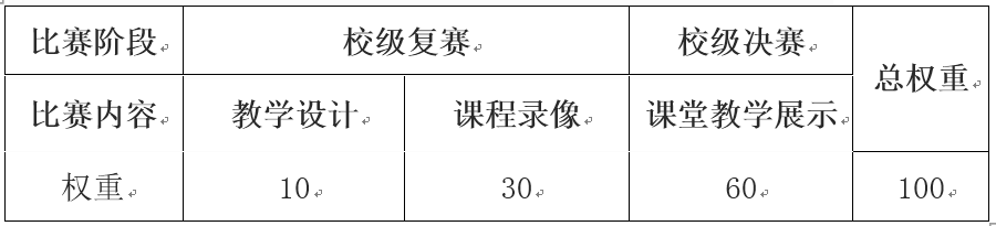 课堂教学创新大赛校级比赛各阶段权重表