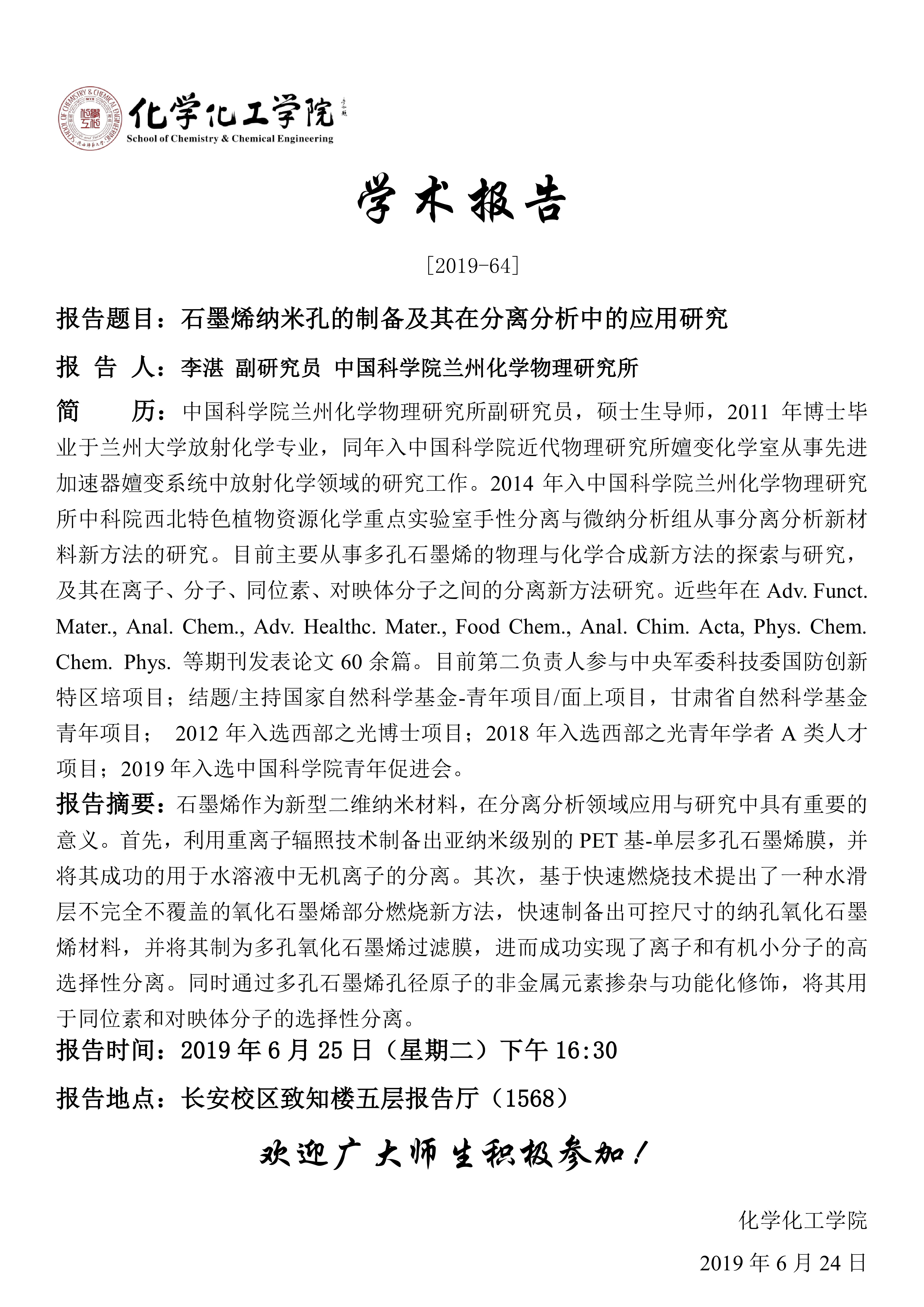石墨烯纳米孔的制备及其在分离分析中的应用研究