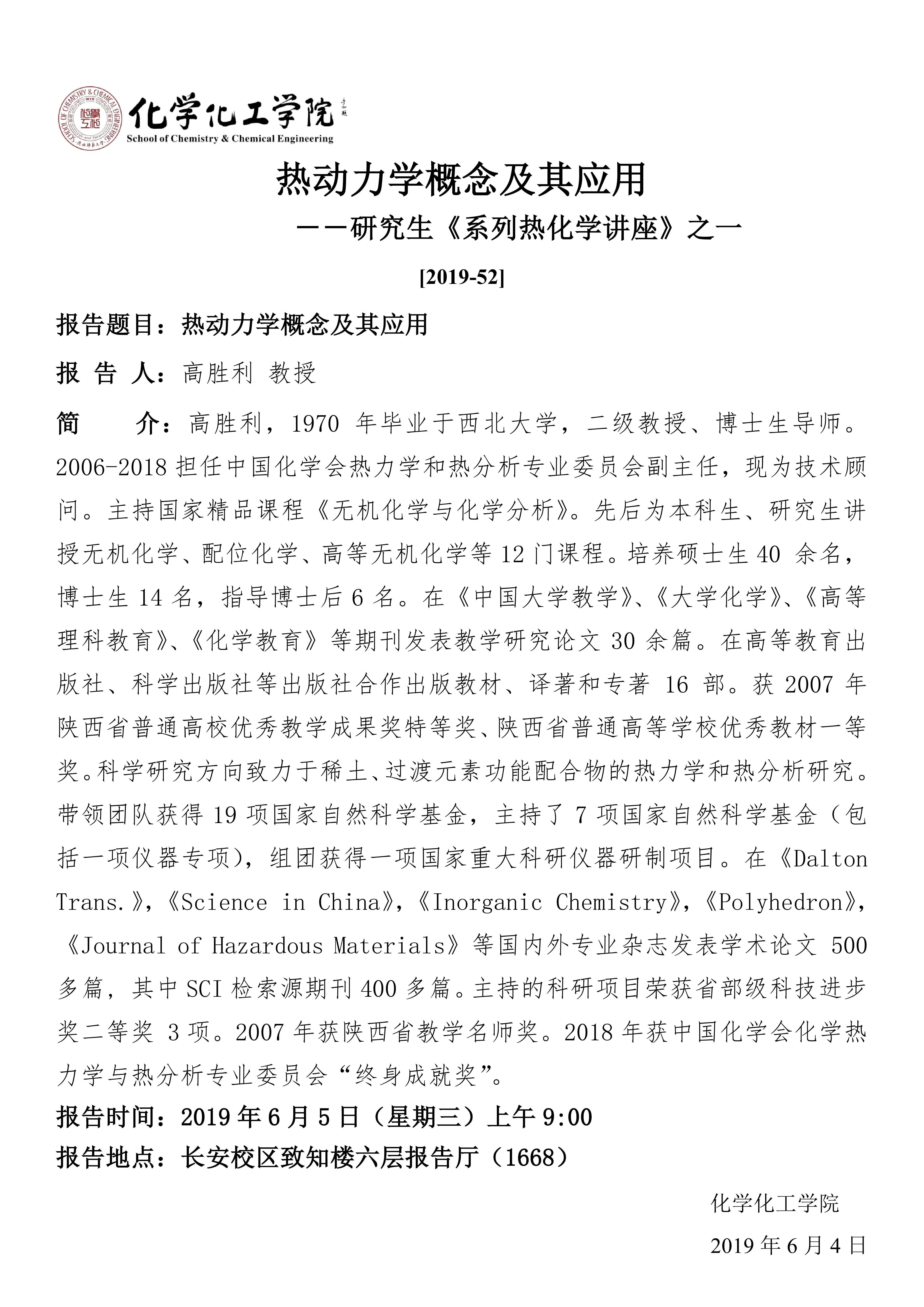地址:陕西师范大学长安校区致知楼一段