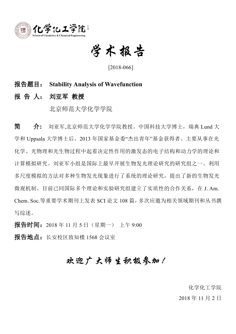 地址:陕西师范大学长安校区致知楼一段