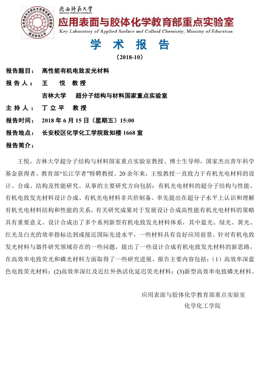 地址:陕西师范大学长安校区致知楼一段
