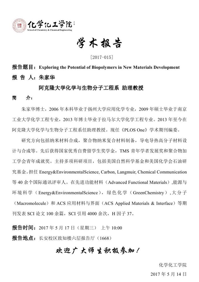 朱家华学术报告预告[2017-015]