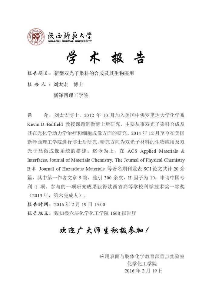 地址:陕西师范大学长安校区致知楼一段