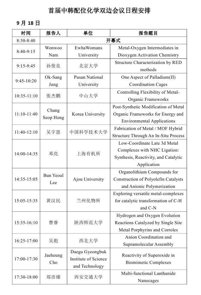 2015中韩配位化学双边研讨会