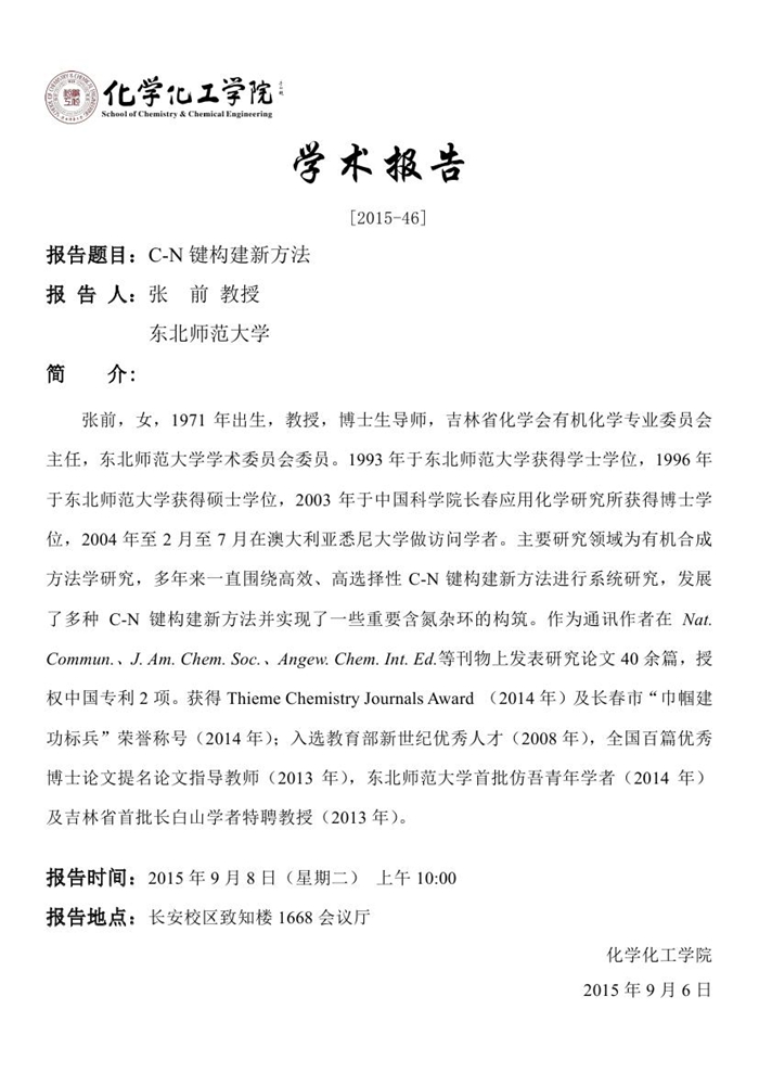 地址:陕西师范大学长安校区致知楼一段