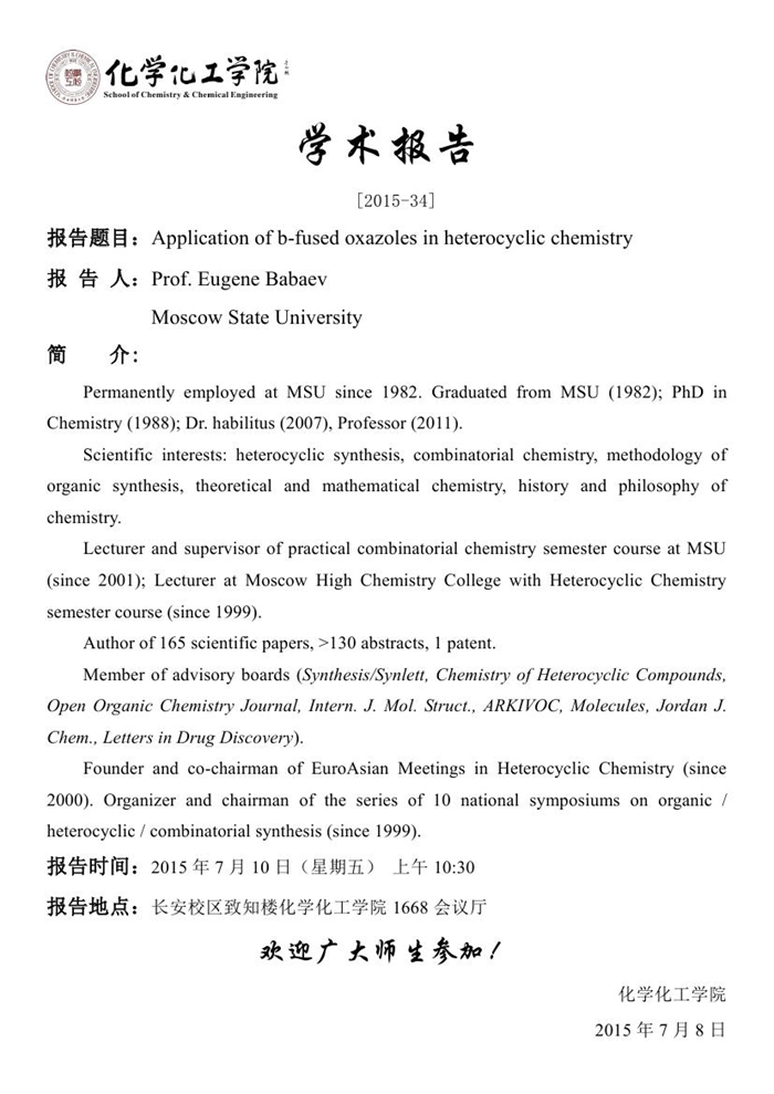 地址:陕西师范大学长安校区致知楼一段