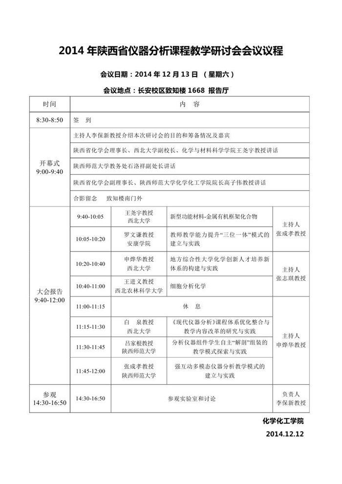 2014年陕西省仪器分析课程教学研讨会