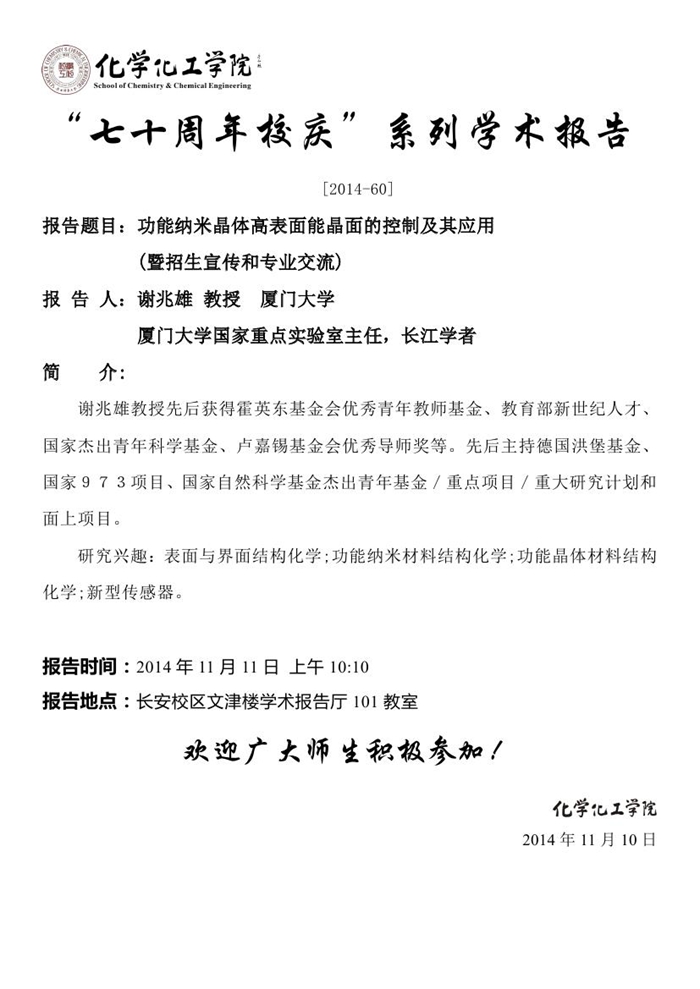“七十周年校庆系列讲座” [2014-60]
