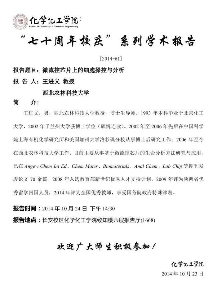 “七十周年校庆系列讲座” [2014-51]