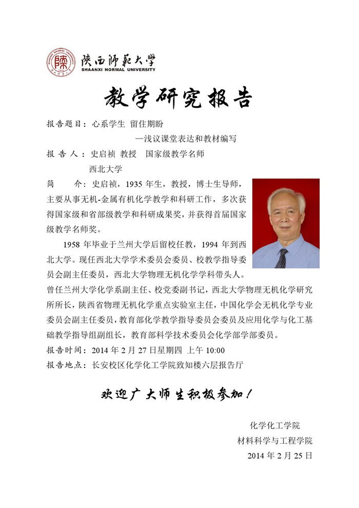 地址:陕西师范大学长安校区致知楼一段