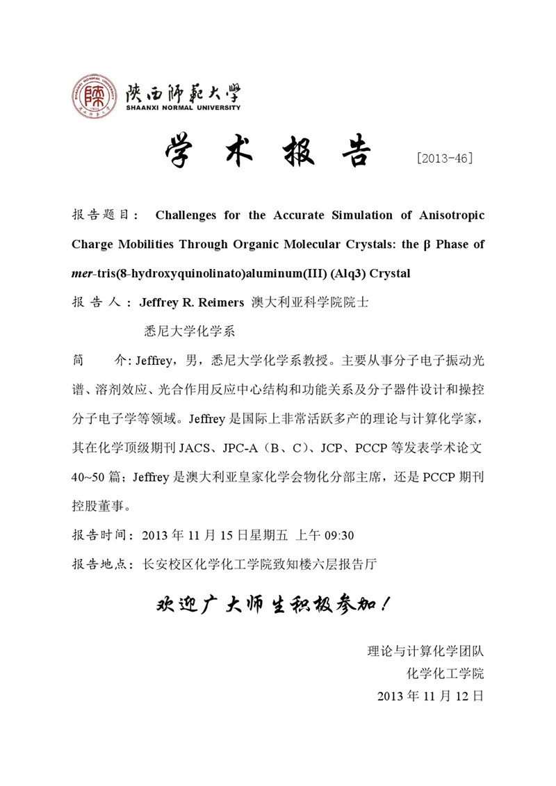 学术报告预告[2013-46]