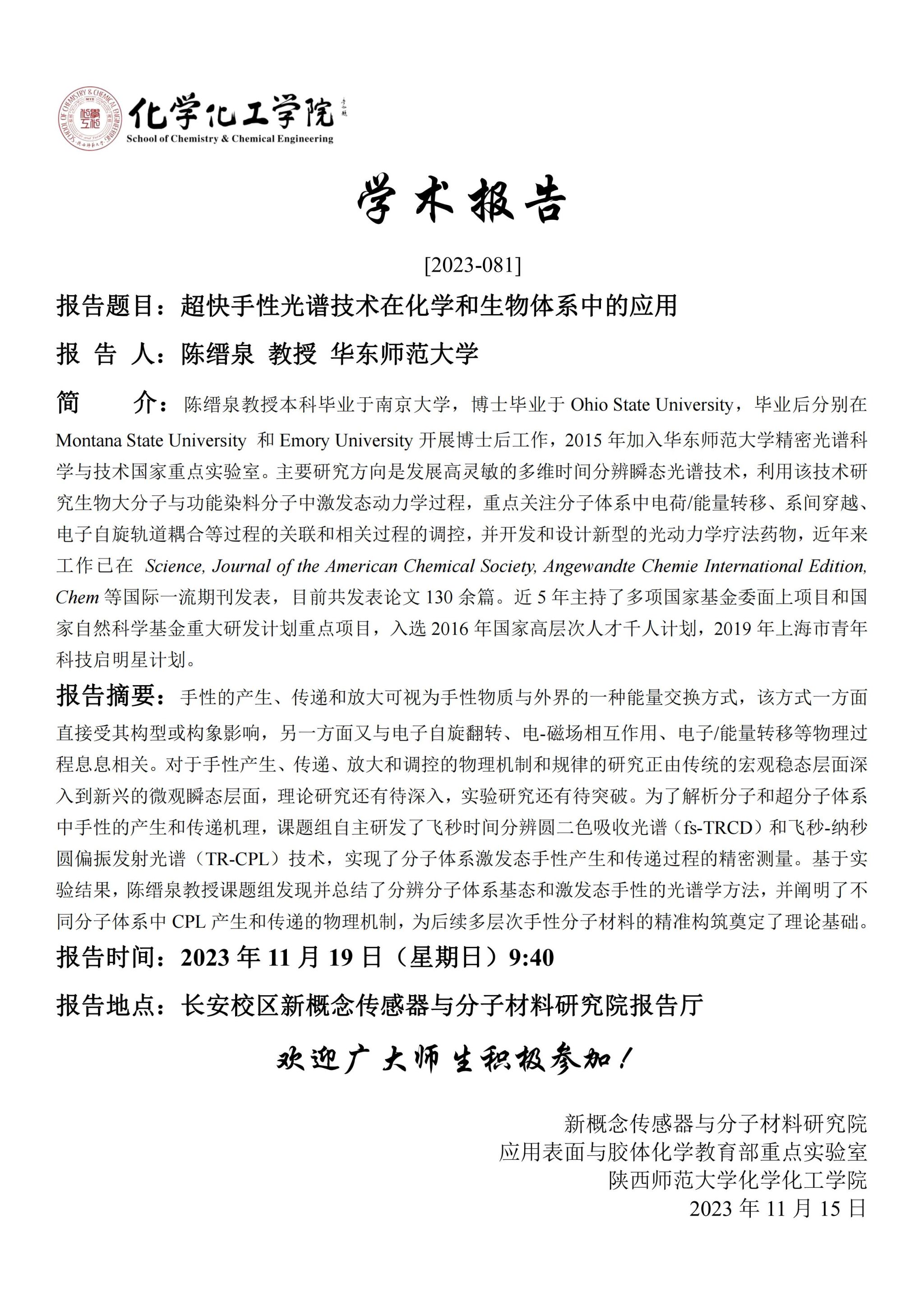 地址:陕西师范大学长安校区致知楼一段
