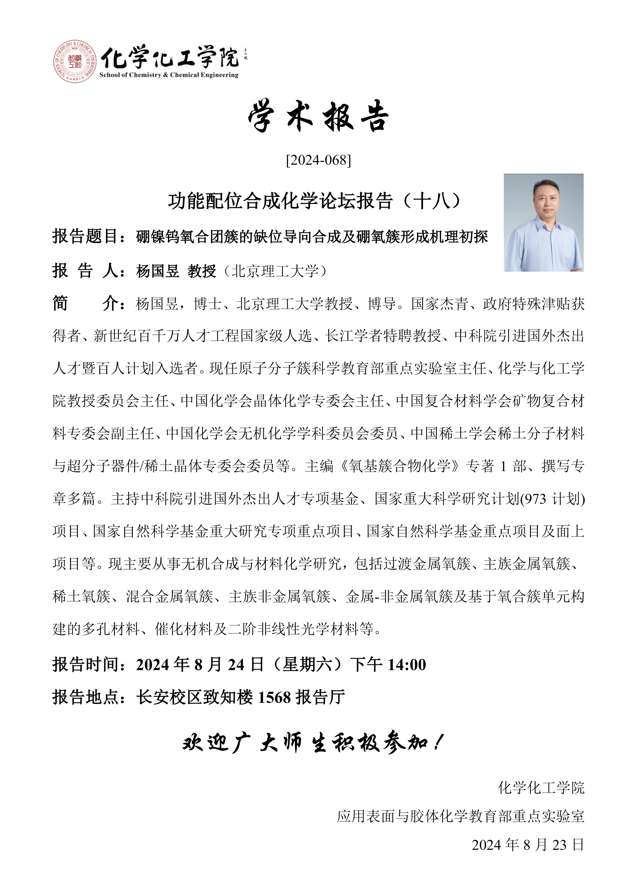 地址:陕西师范大学长安校区致知楼一段