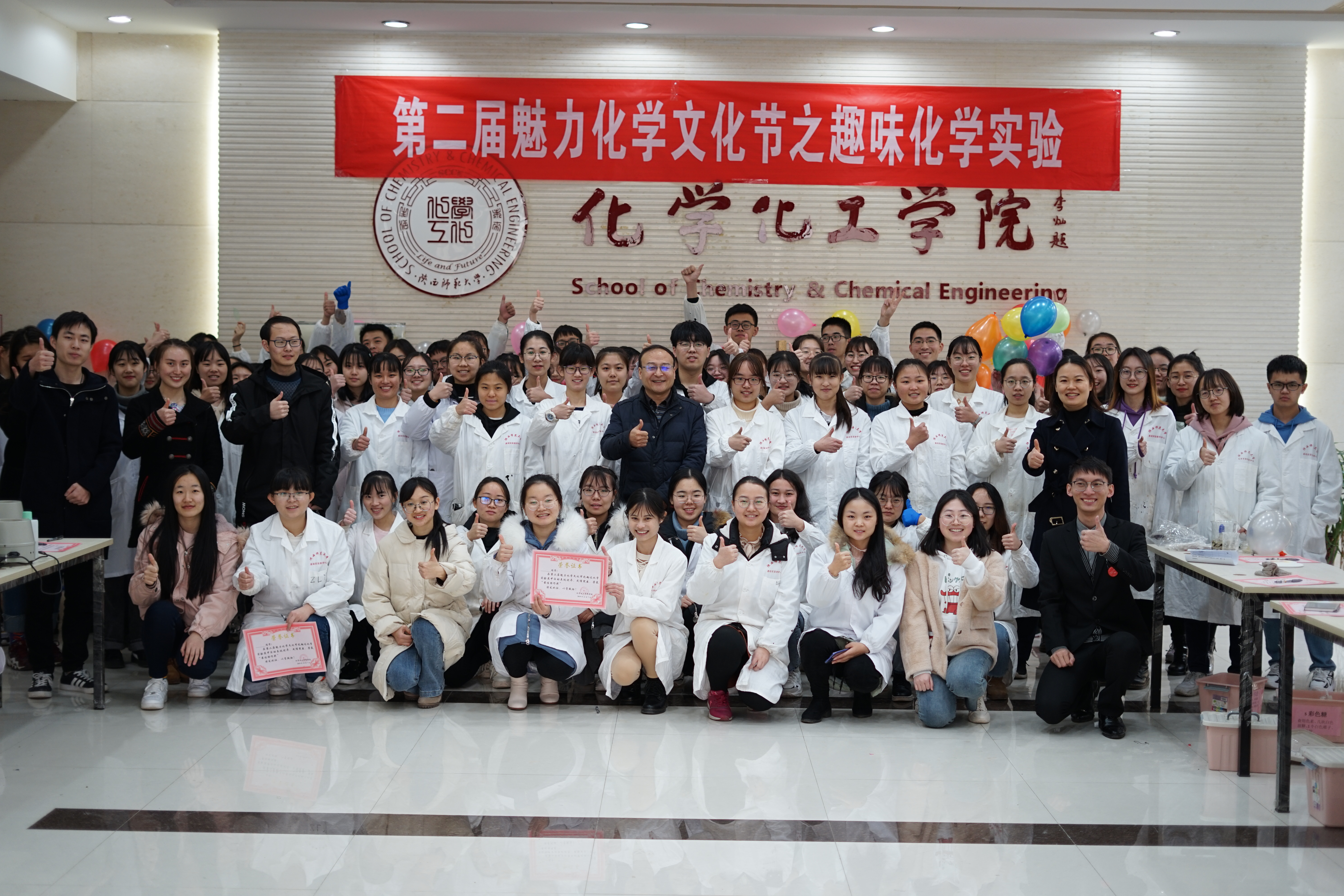 为进一步培养学生的科学精神,提升化学素养,感悟化学的魅力, 12月8日下午,英国365集团公司“第二届魅力化学文化节之趣味化学实验展”活动在致知楼一层大厅顺利开展,17组团队均由2017级、2018级和2019级本科生组成,积极参与并完美展示了趣味化学实验的魅力。