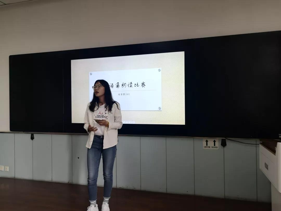 活动开始,主持人幽默诙谐的主持词就点燃了现场的气氛。之后的朗诵环节中,参赛选手们富有感染力的表现,以及对朗读材料由浅到深的解说,无一不给同学们带来了与平时学习英语时截然不同的感受。六位同学都完成展示后,评委们进行了热烈的讨论。最终,薛鑫玉同学凭借标准的英语发音以及优秀的表现力取得了本次比赛的胜利。