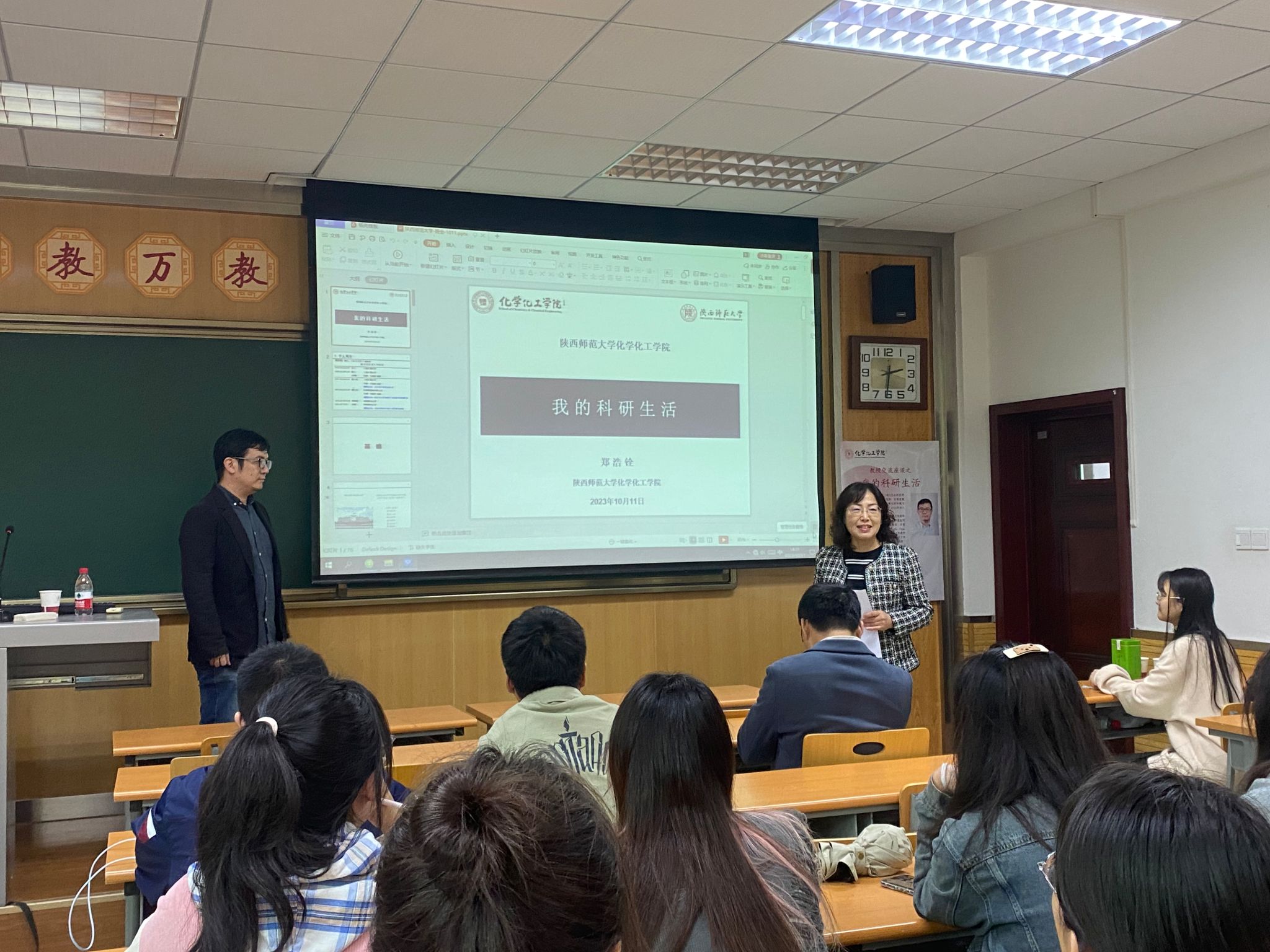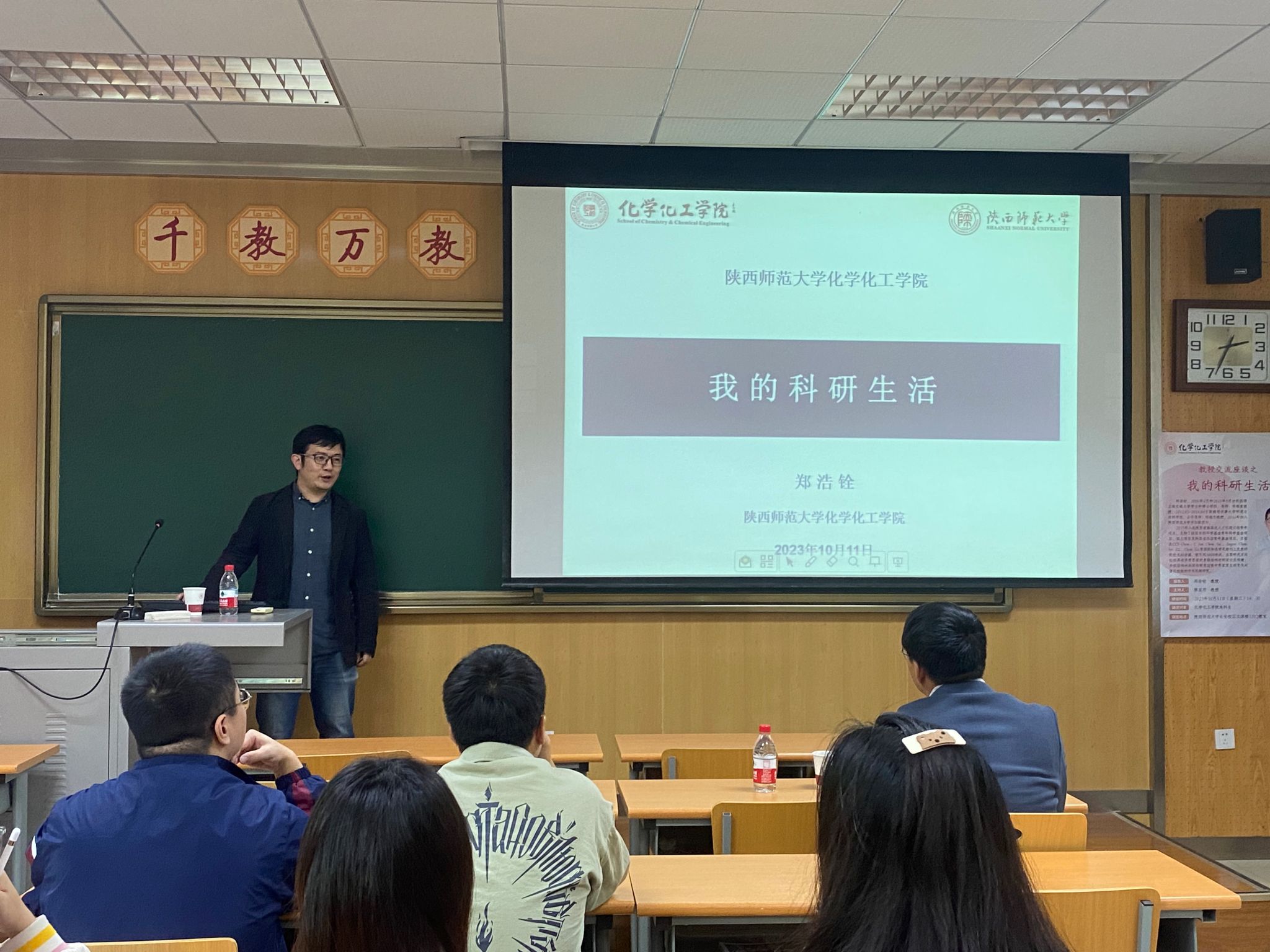 20231011日下午,郑浩铨教授受2021级化学卓越教师实验班邀请,于长安校区文渊1312教室围绕科研学习作经验分享讲座。本次活动由2021级卓越班项目主任陈亚芍教授和班主任张学鹏副教授主持。