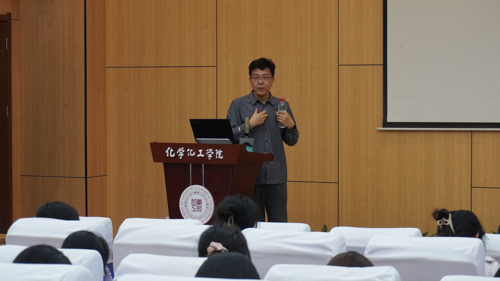 报告尾声,何明家老师鼓励在场的师范生在即将走上工作岗位之前,要严格要求自己,珍惜时间,抓住每一次练习的空隙,不错过任何一次表达的机会。他指出“不要把自己推到安全感十足的井底,暴露问题才能进步”,趁着在校练就过硬的口语表达能力和学科教学语言能力,争做卓越的化学教师。