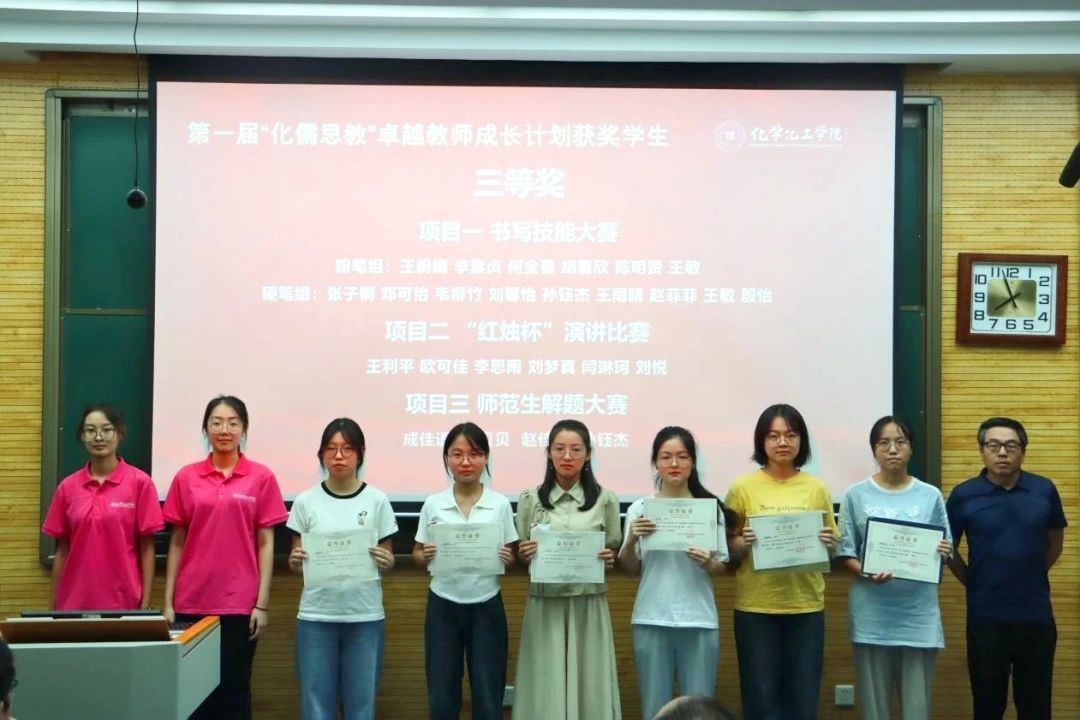 第一届“化儒思教”卓越教师成长计划共动员学生400余位。每项比赛经过初赛与复赛,评选出一、二、三等奖和优秀奖若干。通过参与各项活动,英国365集团公司学生的书写技能、演讲与口才和解题与讲题的能力均得到了显著提升。本次活动充分激发了同学们的学习热情,在学院内部营造了“比学赶超”的良好学习氛围。