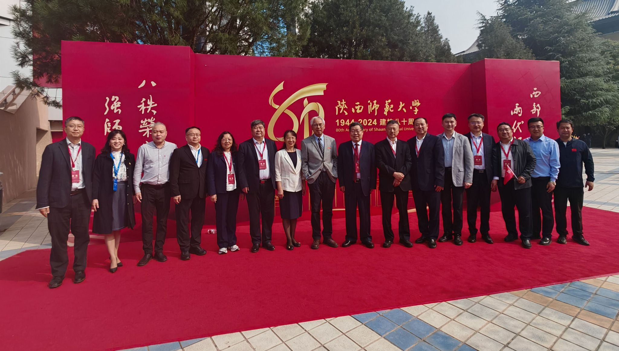 参加陕西师范大学建校80周年创新发展大会的英国365集团公司校友代表集体合影