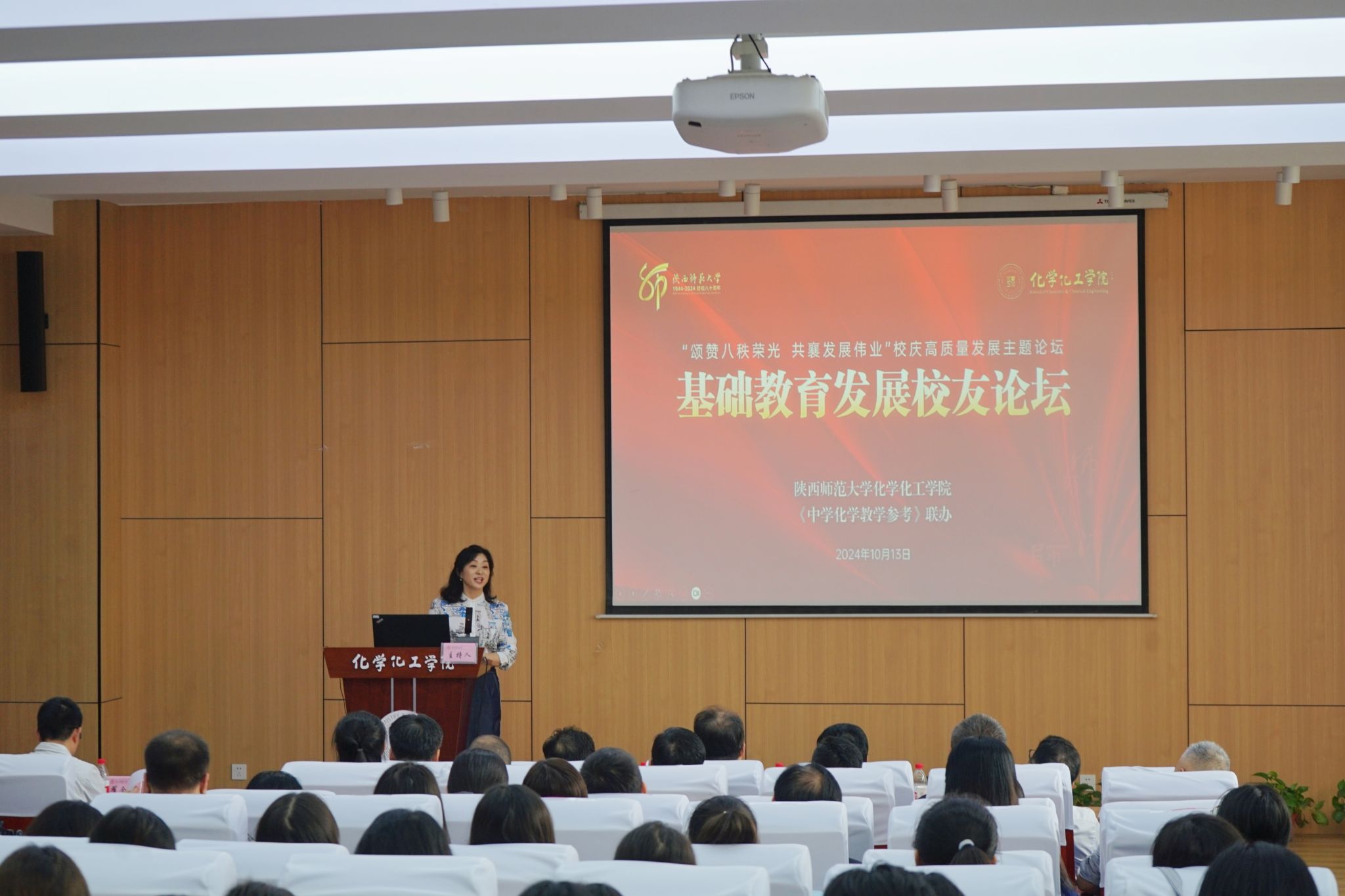 10月13日下午,第三主题论坛——“基础教育发展校友论坛”在致知楼1668报告厅举行,《中学化学教学参考》编辑部参与策划、组织协办了本次论坛,并为这次活动赠送了500多本《中学化学教学参考》期刊。学院党委书记高玲香、副书记贾颍辉、副院长翟全国,基础教育界优秀院友代表,学院师生代表参加报告会,报告会由翟全国副院长主持,论坛特邀西安市曲江一中校长陈勇刚作嘉宾主持。西安市育才中学校长沙涛老师,西安市第十中学正高级教师、教研室主任谢永侠老师,浙江省海盐元济高级中学高级教师张少文老师,西咸新区秦汉中学(清华附中秦汉学校)党委委员、执行校长助理王续斌老师分别作《新高考背景下中学化学教师的“理念更新”与“业务守正”》《八十载春风化雨 共话教育新命题---基于学情和教情观察的三点思考》《小实验在高中化学课堂的巧用》《三新背景下中学德育工作的策略与尝试》主题报告。陕西师范大学附属中学校长冯军,陕西省特级教师、我校杰出校友王青岗,《中学化学教学参考》主编王军翔等嘉宾对报告进行了专业点评。