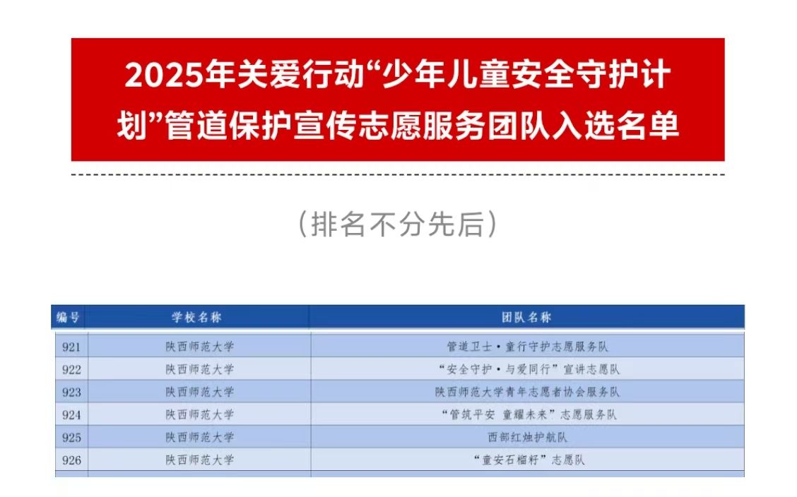 近日,团中央青年志愿者行动指导中心公布了2025年关爱行动“少年儿童安全守护计划”管道保护宣传志愿服务团队名单,英国365集团公司本科生第三党支部组建的管道卫士·童行守护志愿服务队成功入选。