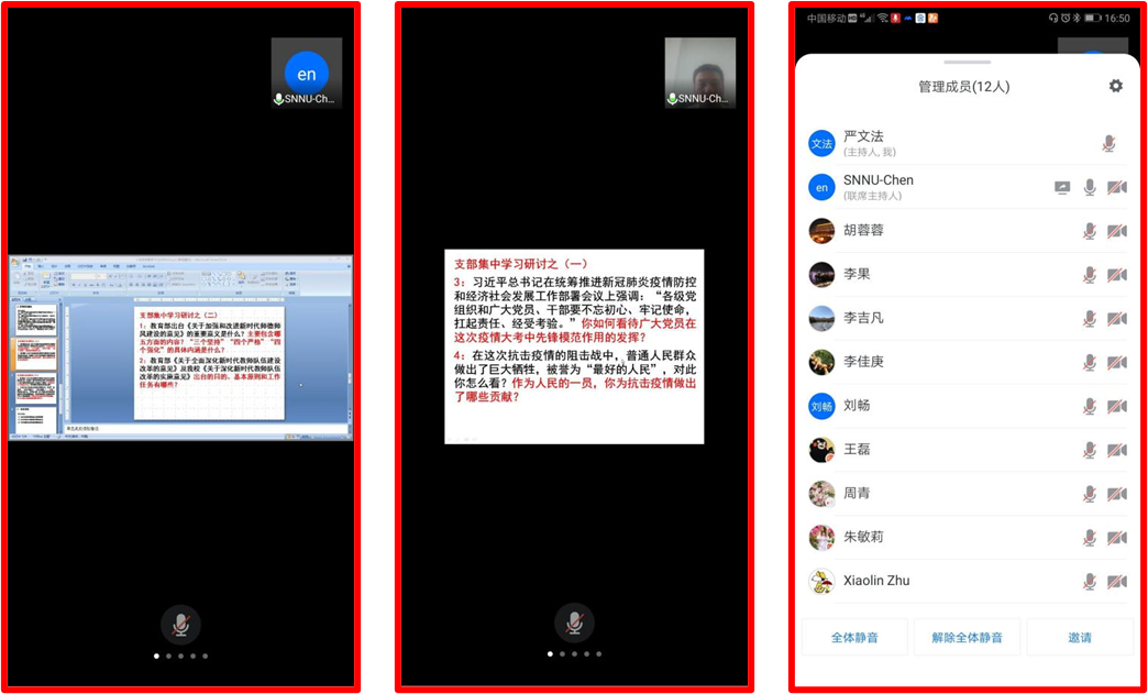 6月17日晚,教工分析化学党支部15名党员(1名党员网络拥堵)齐聚云端,采用腾讯会议,开展了一次别开生面的支部组织生活学习活动。此次学习的主题是“深化教师师德师风建设,恪守“新时代高校教师职业行为十项准则”,努力成为‘四有’好老师”。