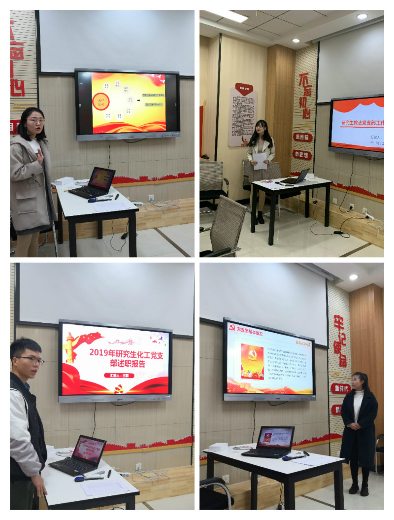 会上,学院16个党支部书记(7个教工党支部,7个研究生党支部,2个本科生党支部)围绕年度支部工作主要成效、开展“不忘初心、牢记使命”主题教育情况、落实基层党建工作重点任务情况、发挥党支部战斗堡垒作用和党员先锋模范作用情况、基层党建工作存在的问题以及下一步支部工作思路等内容依次述职。每一位支部书记汇报结束后,联系该支部的党委委员都对该支部工作情况作出点评与提问。