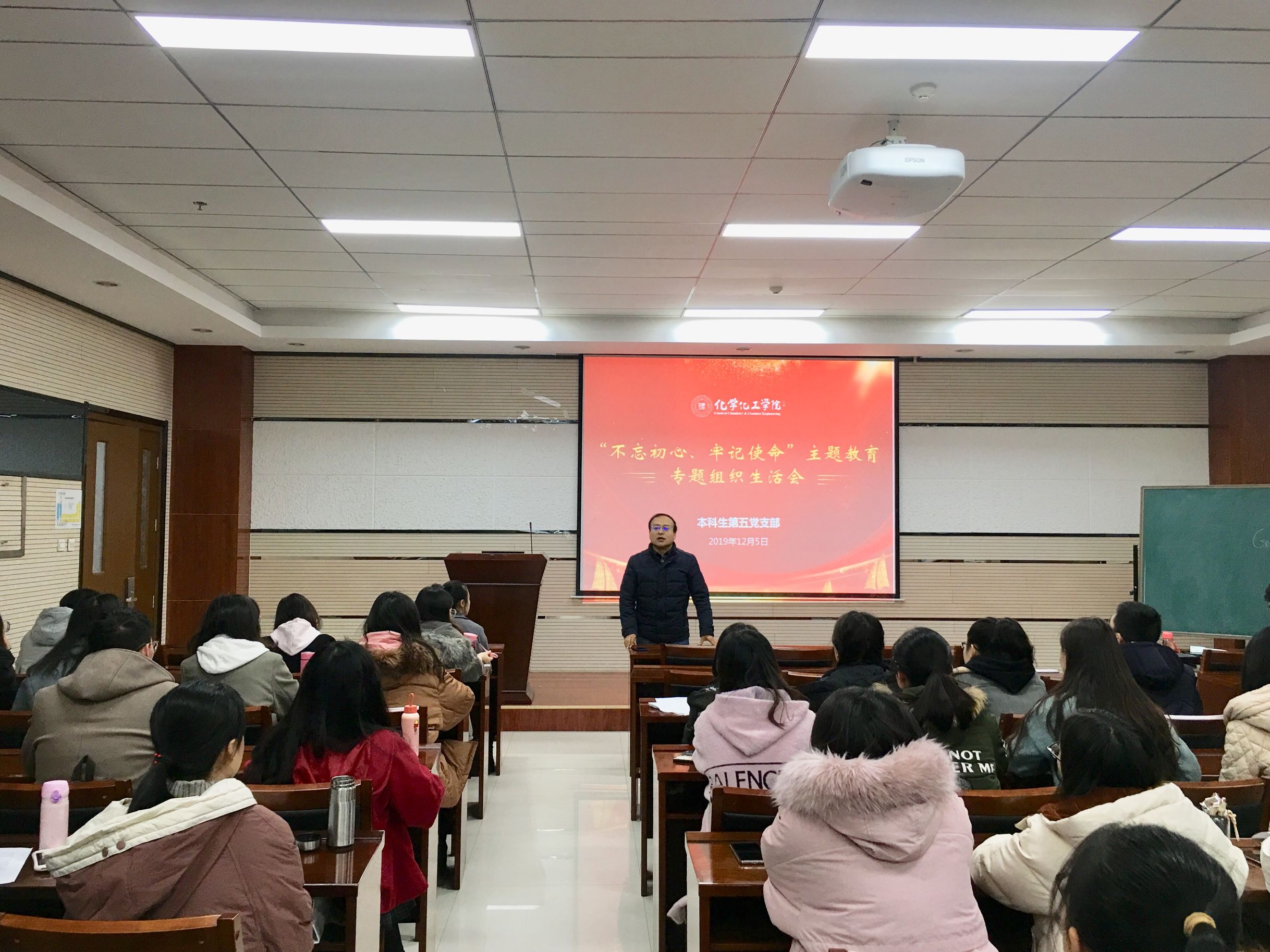 12月5日上午8点,英国365集团公司本科生第五党支部于致知楼1668召开“不忘初心,牢记使命”主题教育专题组织生活会,英国365集团公司党委副书记王晓、第五党支部书记翁思洁以及宣传委员邓文珺出席本次会议。