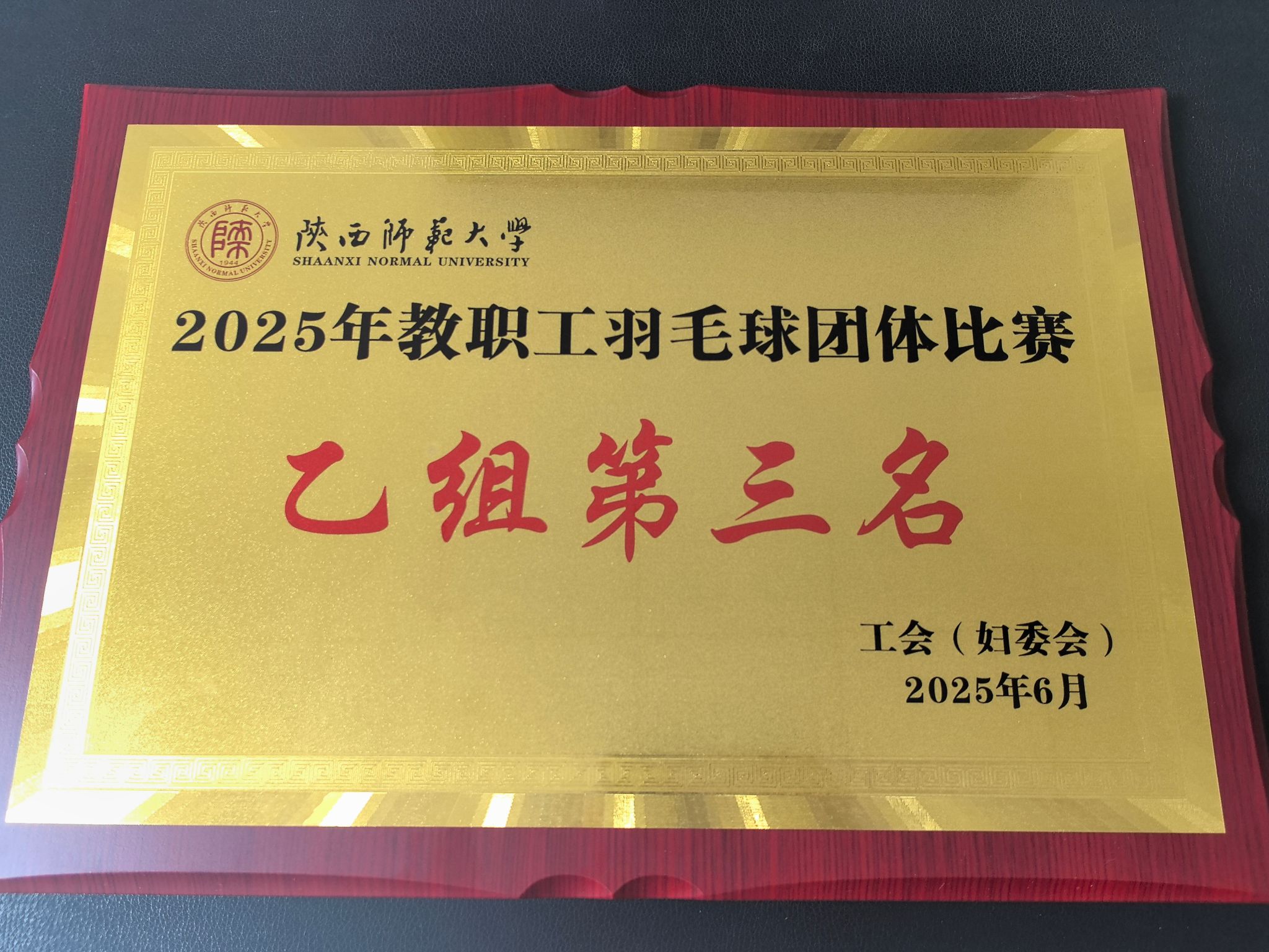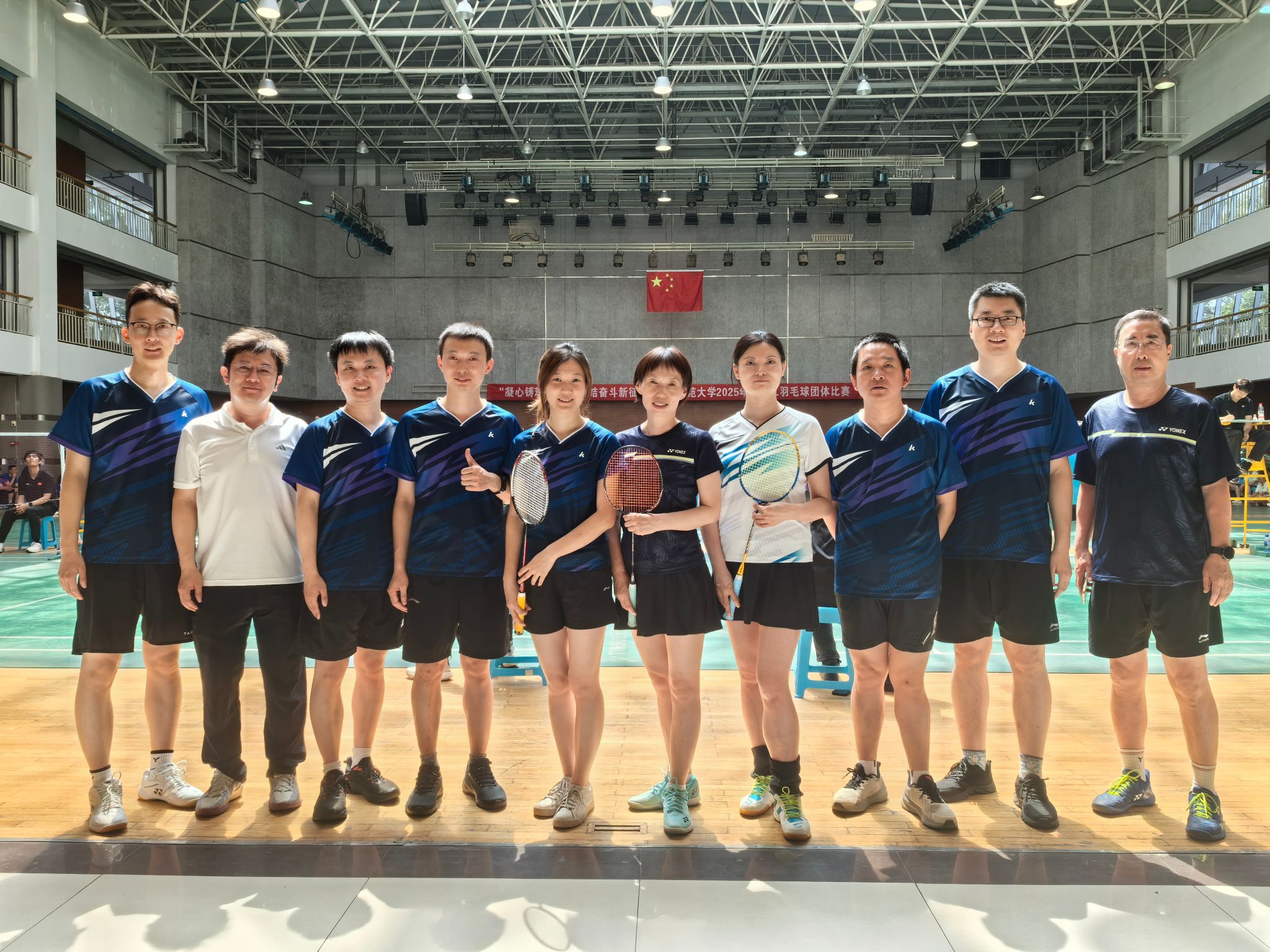 6月15日,英国365集团公司组织教职工参加“凝心铸魂跟党走 团结奋斗新征程”陕西师范大学2025年教职工羽毛球团体比赛,比赛在雁塔校区综合体育馆举行。英国365集团公司教工羽毛球队由老中青各年龄段教师组成,他们在比赛中沉着应战、默契配合,以精湛的球技和顽强的斗志展现出积极向上的精神态度,在小组循环赛中以第一名出线。在随后的淘汰赛中,接连战胜材料科学与工程学院代表队、物理学与信息技术学院代表队,荣获乙组第三名。