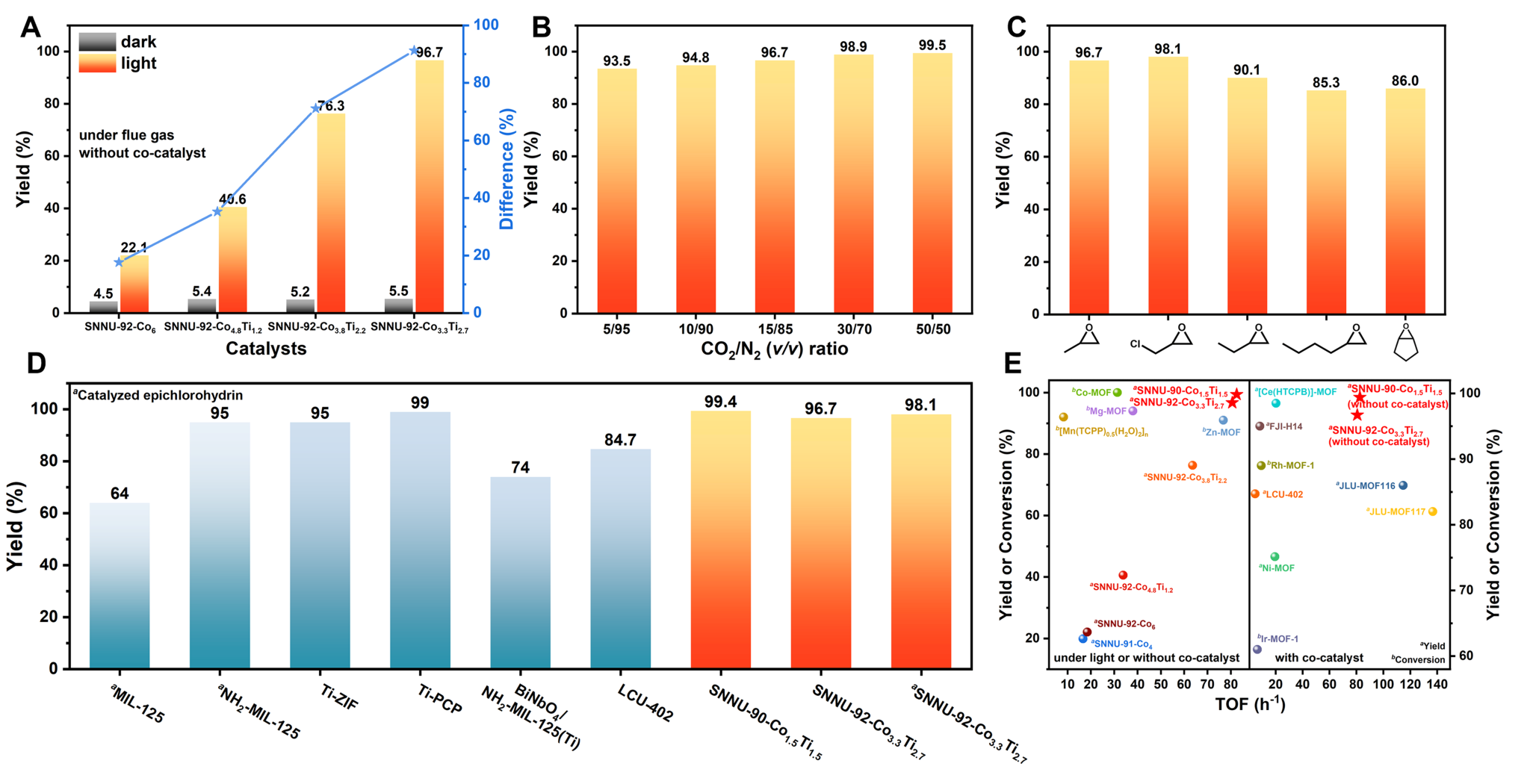 5TiM-MOFs的光催化CO2环加成性能